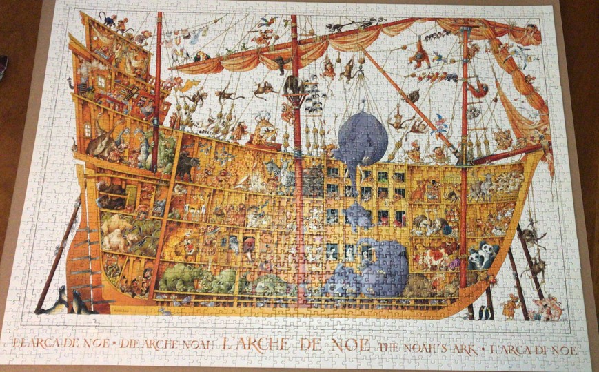Como ya sabrán, uno de mis pasatiempos preferidos es armar rompecabezas y, hace tiempo estaba armando uno de 2,000 piezas. Me estaba costando un poco más de trabajo que lo normal ya que toda la orilla tenía varias filas de piezas completamente blancas. (Disculpen la foto, fue hace tiempo que la tomé y aún no “perfeccionaba” mis habilidades fotográficas para rompecabezas).