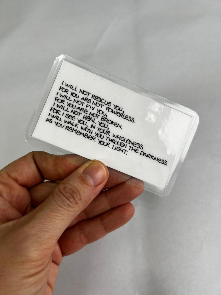 “I will not rescue you, for you are not powerless. I will not fix you, for you are not broken. I will not heal you, for I see you, in your wholeness. I will walk with you through the darkness as you remember your light.”